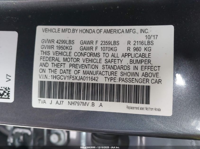 2018 HONDA ACCORD LX
