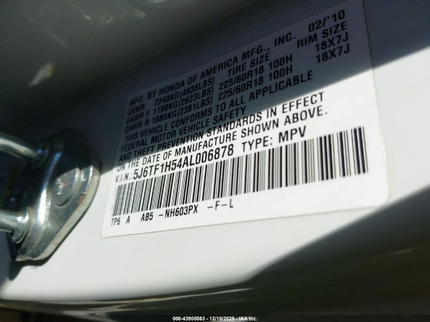 Колір БілийЦиліндри 6Привід Передній привідVIN 5J6TF1H54AL006878Стан Заводиться та їде (перевірено)Ушкодження Задня