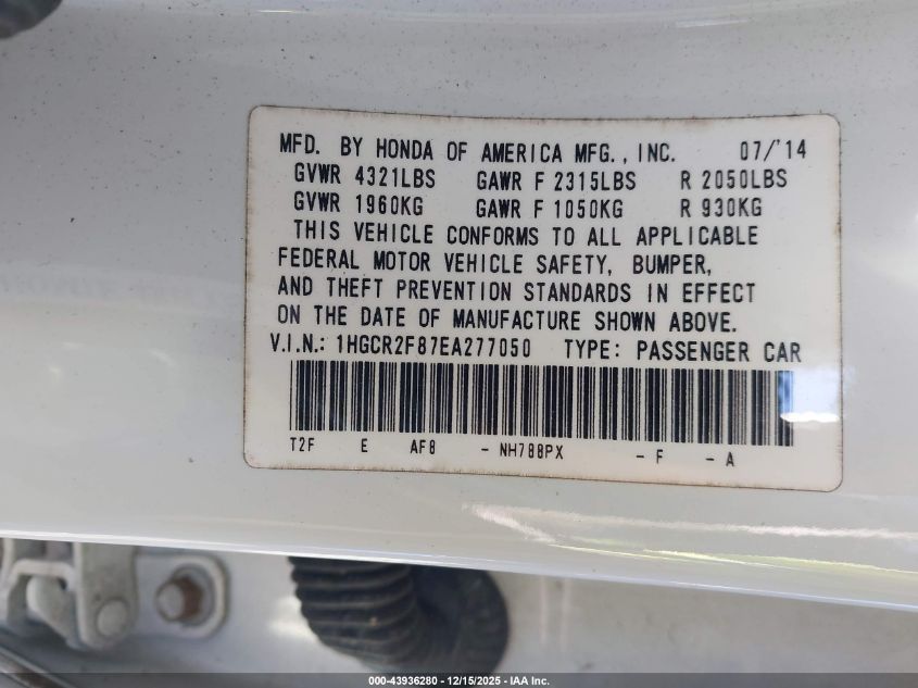 2014 HONDA ACCORD - 1HGCR2F87EA277050, колір - Білий, 2.4, Бензин, Передній привід із США