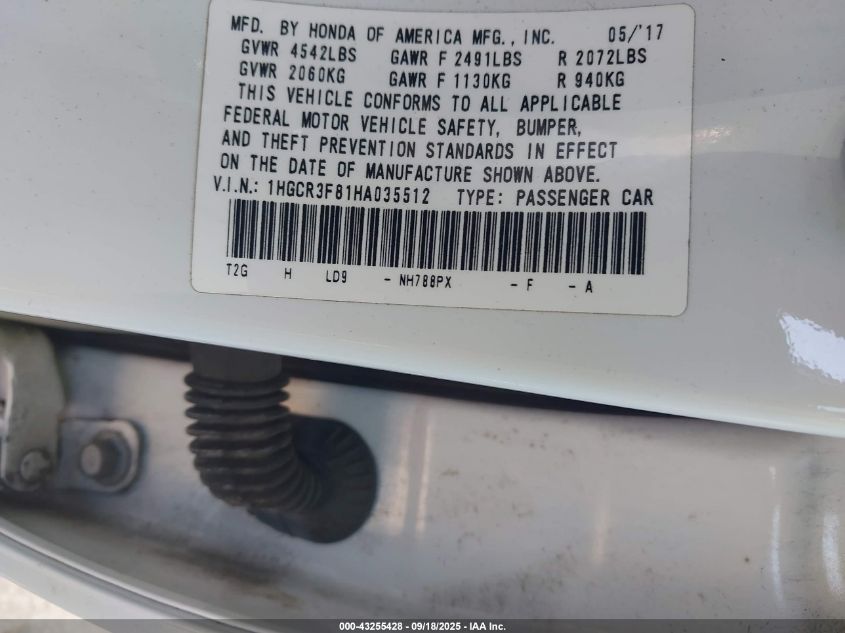2017 HONDA ACCORD - 1HGCR3F81HA035512, колір - Білий, 3.5, Бензин, Передній привід із США