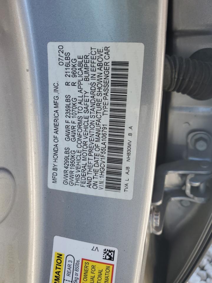 2020 HONDA ACCORD - 1HGCV1F55LA106791, колір - Срібний, 1.5, Бензин, із США