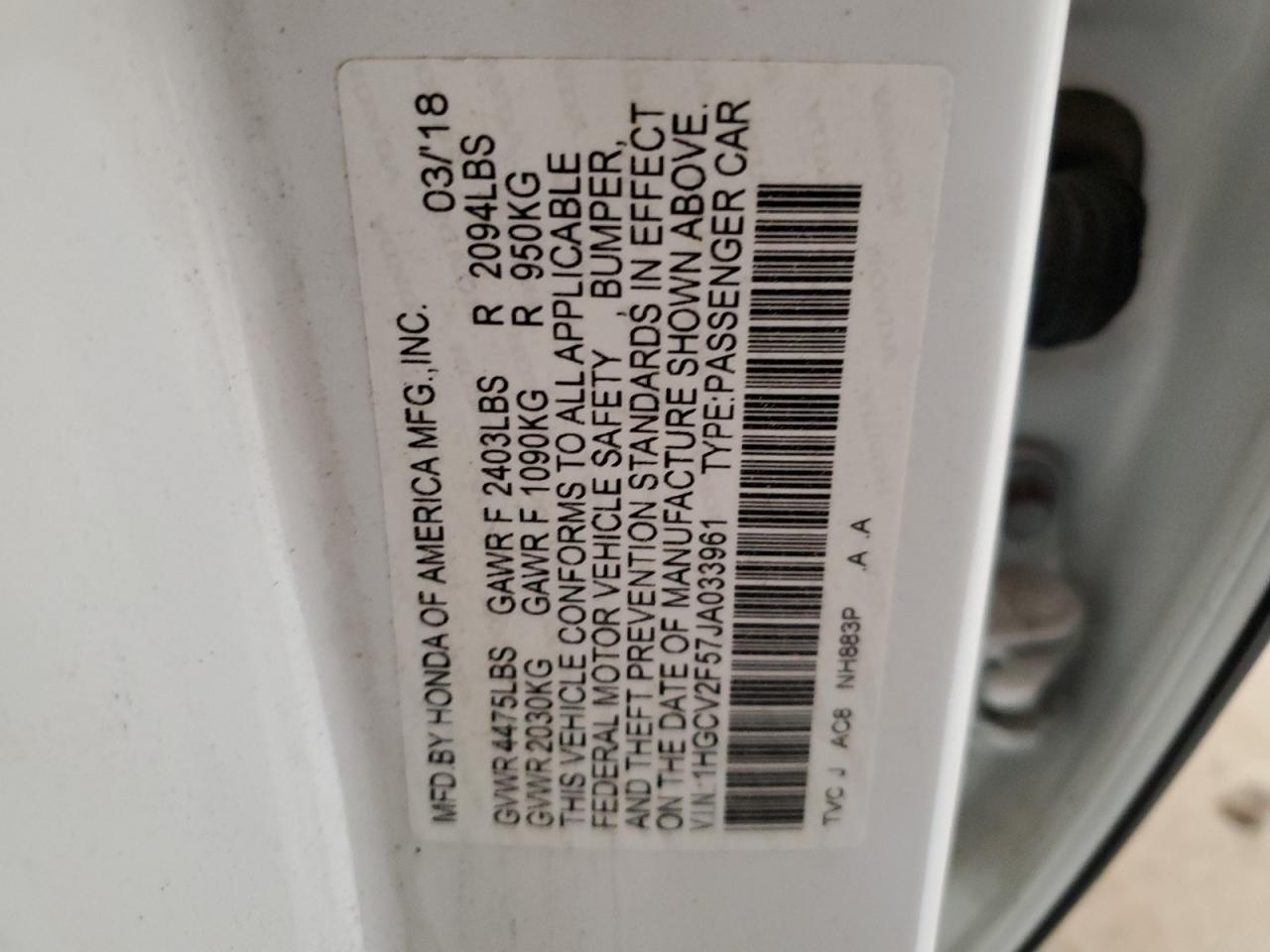 2018 HONDA ACCORD - 1HGCV2F57JA033961, колір - Білий, 2.0, Бензин, із США
