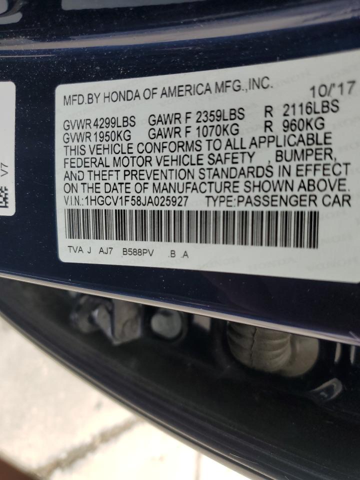 2018 HONDA ACCORD - 1HGCV1F58JA025927, колір - Синій, 1.5, Бензин, із США