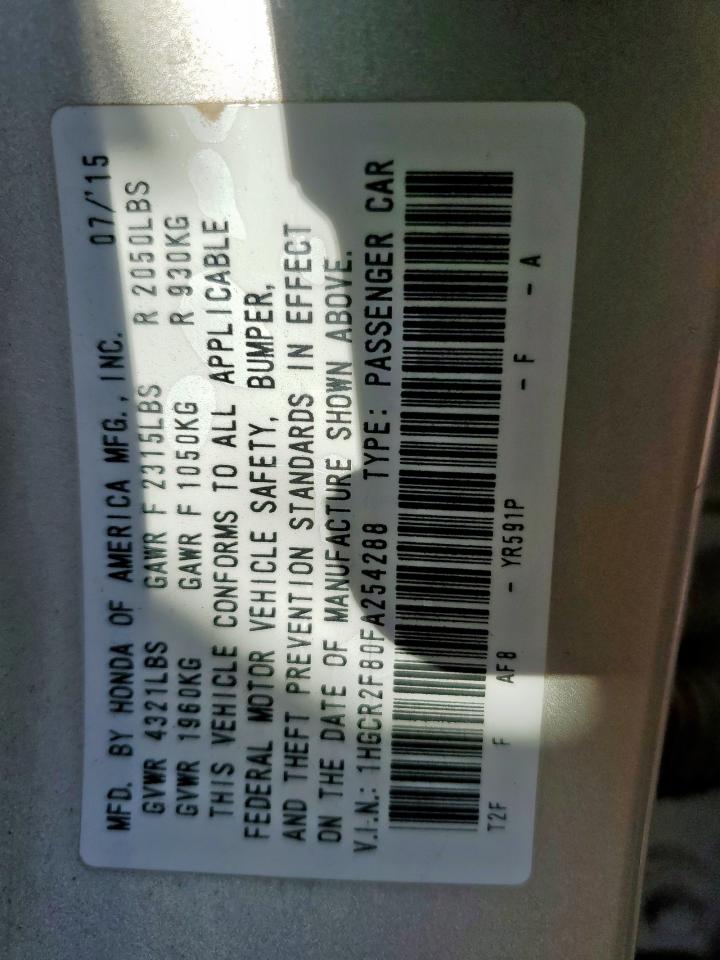 2015 HONDA ACCORD - 1HGCR2F80FA254288, колір - Загар, 2.4, Бензин, із США