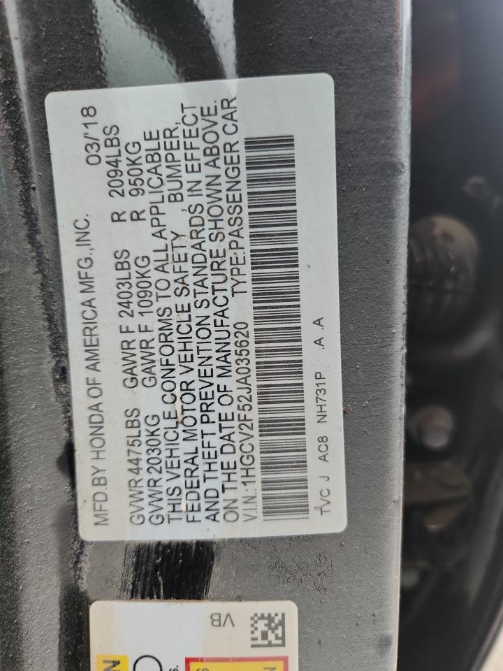 2018 HONDA ACCORD - 1HGCV2F52JA035620, колір - Чорний, 2.0, Бензин, із США