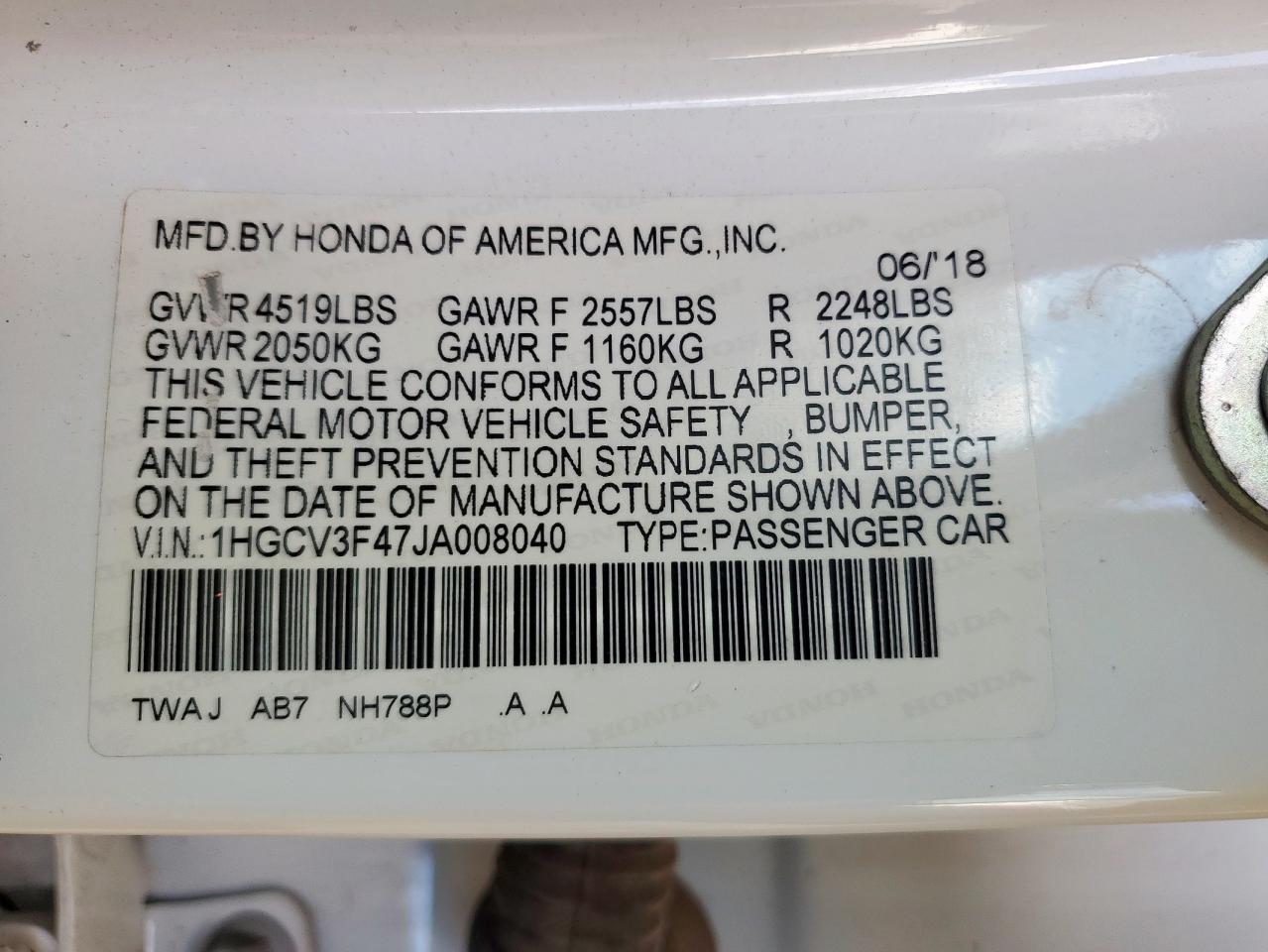 2018 HONDA ACCORD - 1HGCV3F47JA008040, колір - Білий, 2.0, Гібрид, із США