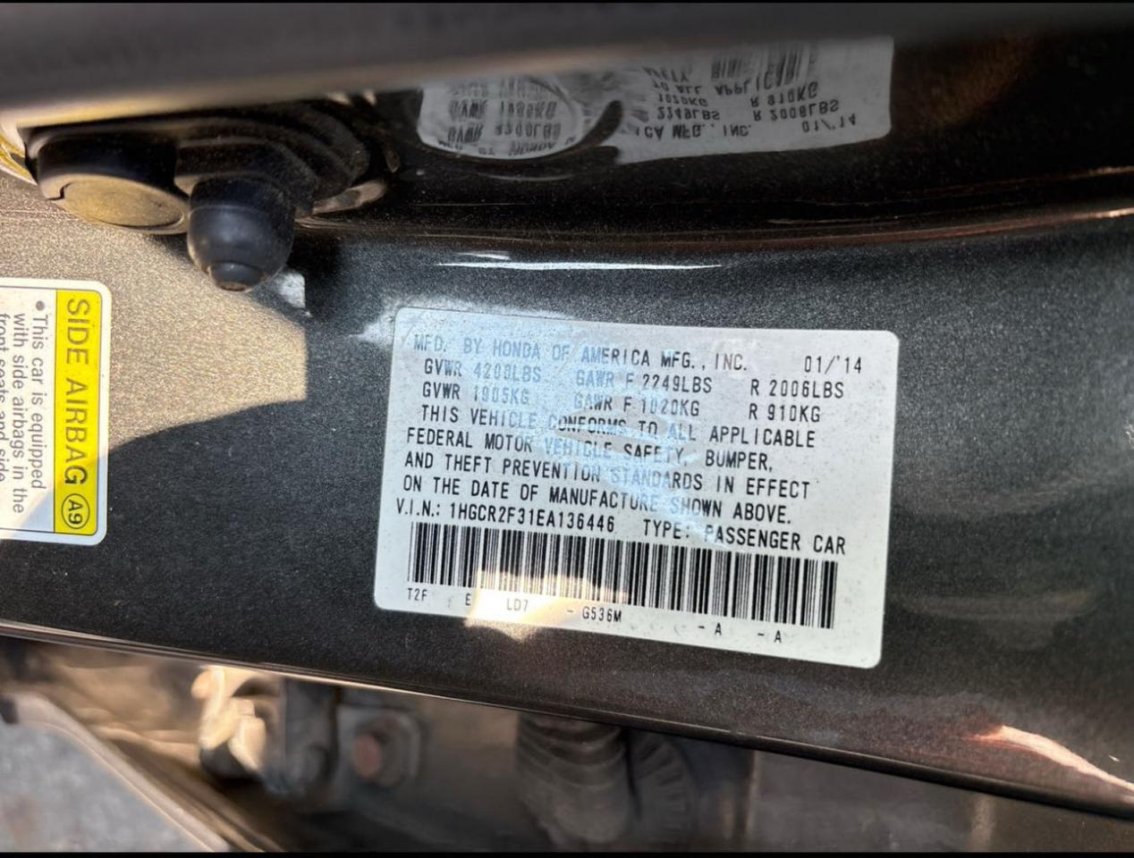 2014 HONDA ACCORD - 1HGCR2F31EA136446, колір - Сірий, 2.4, Бензин, із США