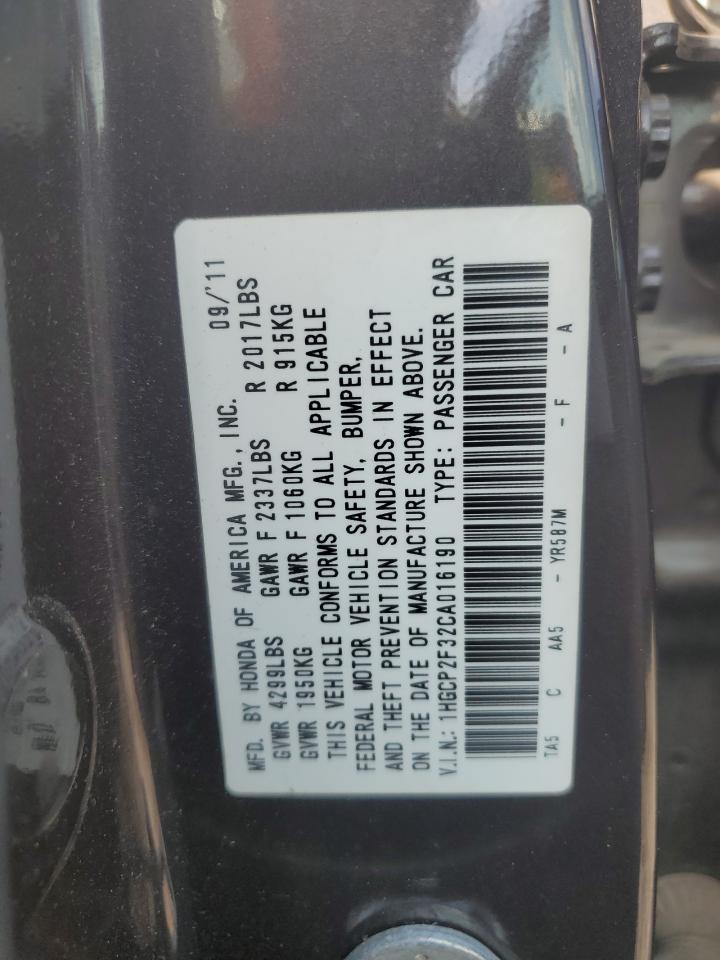 2012 HONDA ACCORD - 1HGCP2F32CA016190, колір - Чорний, 2.4, Бензин, із США