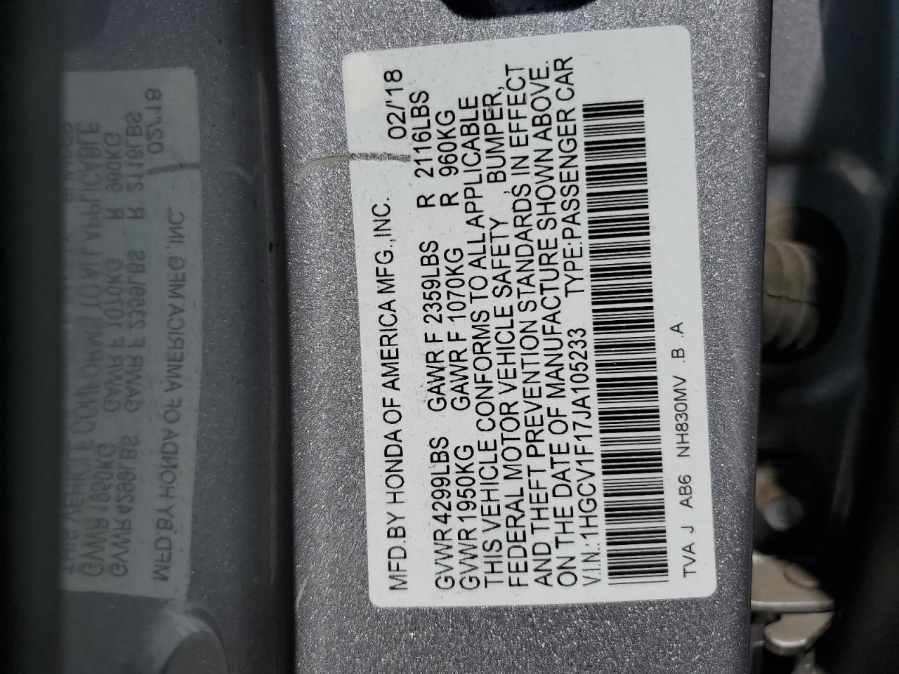 2018 HONDA ACCORD - 1HGCV1F17JA105233, колір - Срібний, 1.5, Бензин, із США
