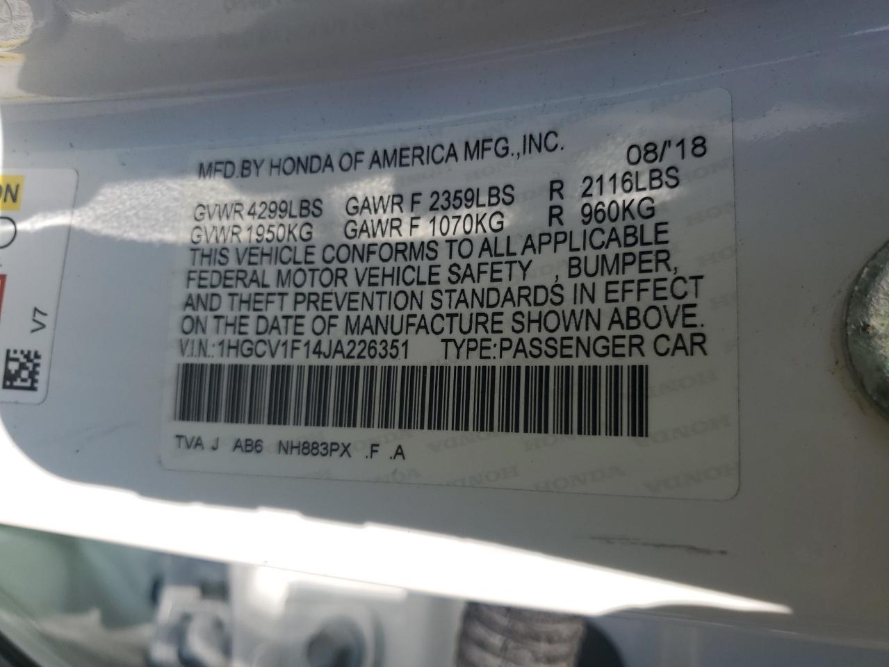 2018 HONDA ACCORD - 1HGCV1F14JA226351, колір - Білий, 1.5, Бензин, із США