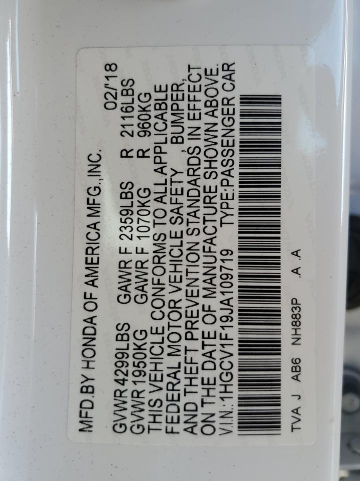 2018 HONDA ACCORD - 1HGCV1F19JA109719, колір - Білий, 1.5, Бензин, із США