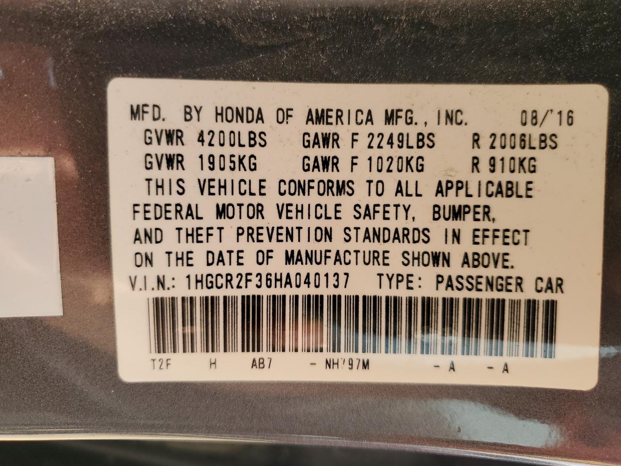 Колір СірийЦиліндри 4VIN 1HGCR2F36HA040137Стан Заводиться та їде (перевірено)Ушкодження Задня
