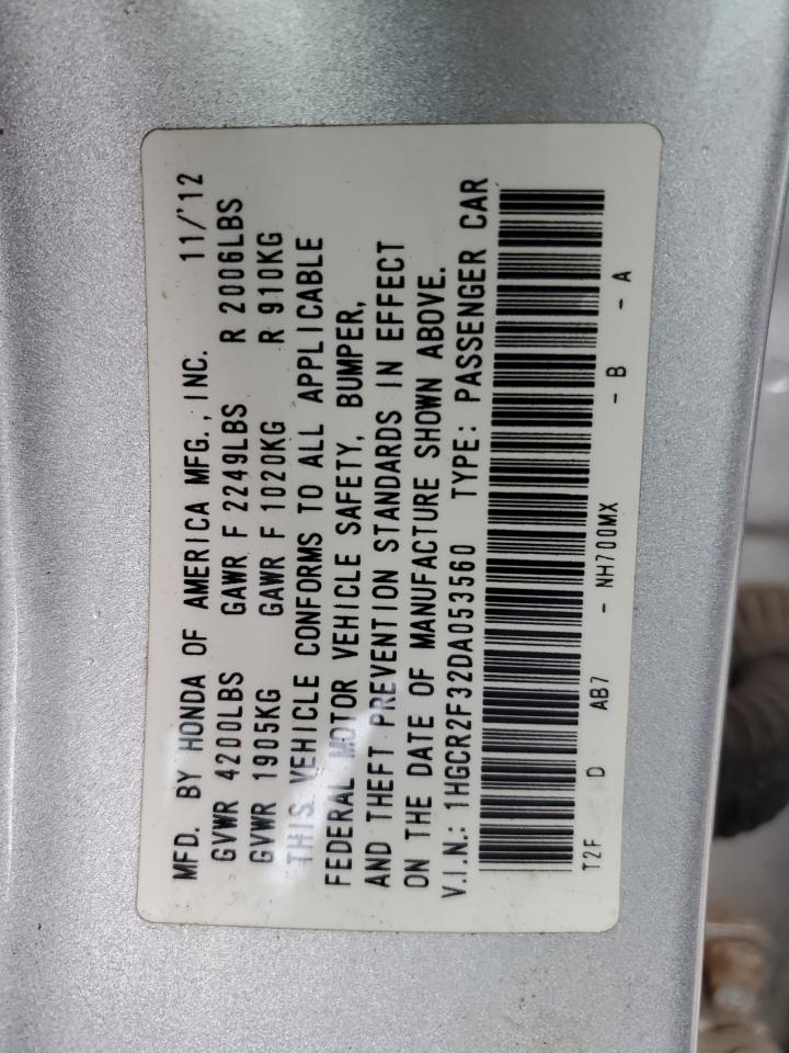 Колір СрібнийЦиліндри 4VIN 1HGCR2F32DA053560Стан Заводиться та їде (перевірено)Ушкодження Передня або задня