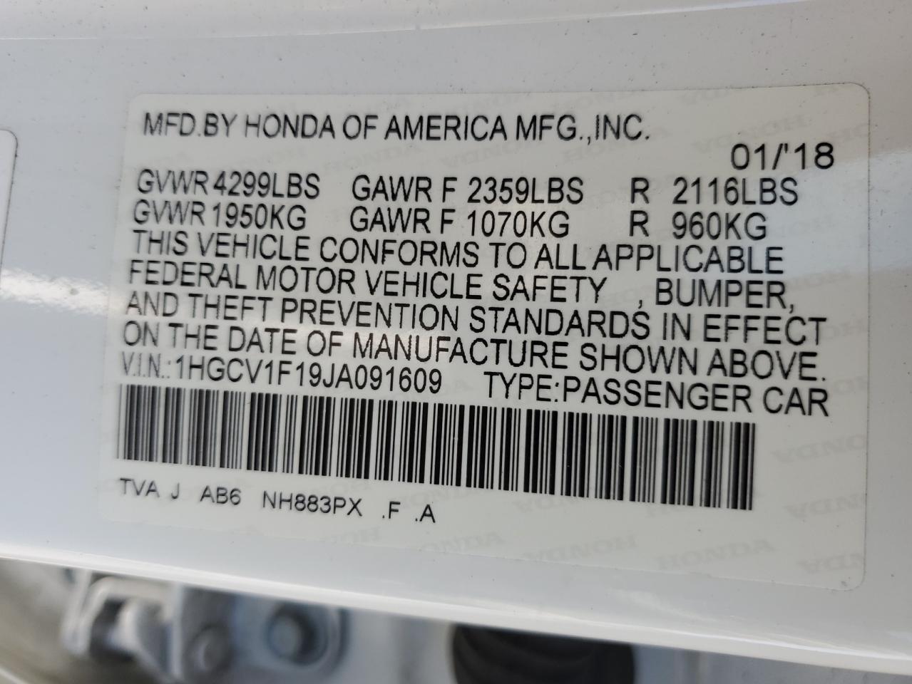 2018 HONDA ACCORD - 1HGCV1F19JA091609, колір - Білий, 1.5, Бензин, із США
