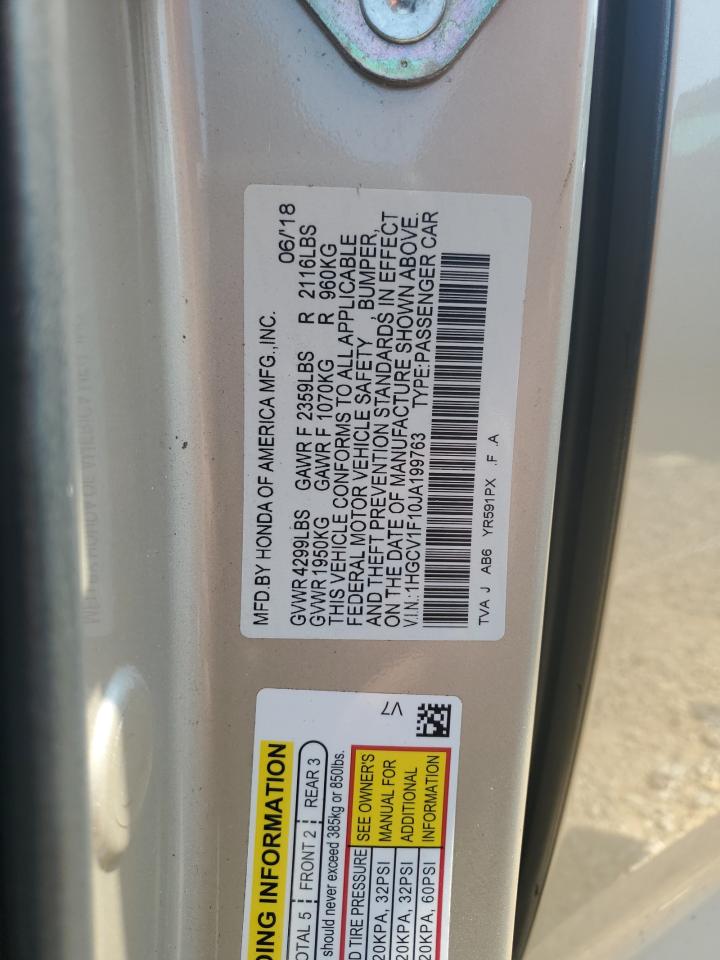 2018 HONDA ACCORD - 1HGCV1F10JA199763, колір - Загар, 1.5, Бензин, із США