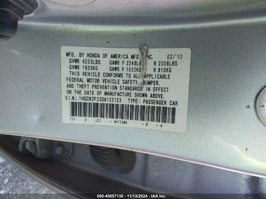 2013 HONDA ACCORD - 1HGCR2F33DA132123, колір - Срібний, 2.4, Бензин, Передній привід із США