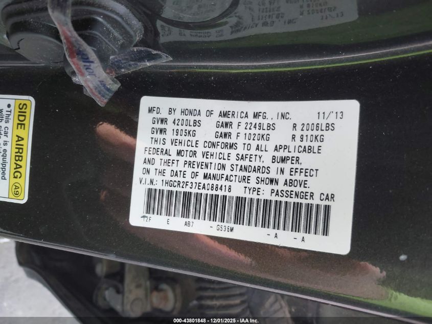 Колір СірийЦиліндри 4Привід Передній привідVIN 1HGCR2F37EA088418Стан СтаціонарноУшкодження Права сторона
