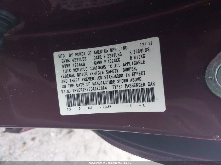 Колір БордовийЦиліндри 4Привід Передній привідVIN 1HGCR2F37DA082004Стан Заводиться та їде (перевірено)Ушкодження Ліва сторона