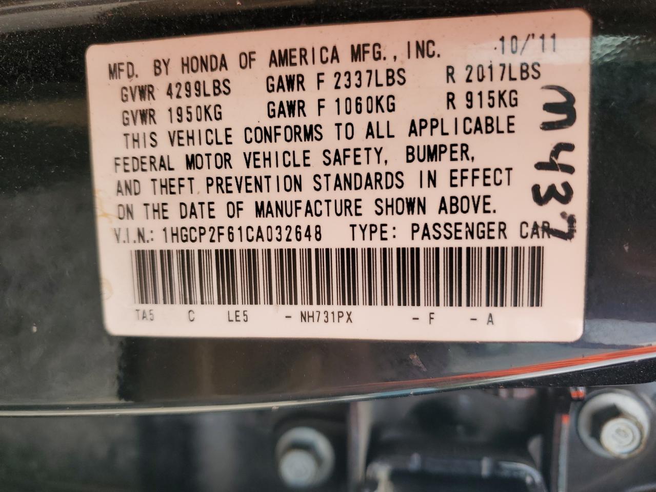 2012 HONDA ACCORD - 1HGCP2F61CA032648, колір - Чорний, 2.4, Бензин, із США
