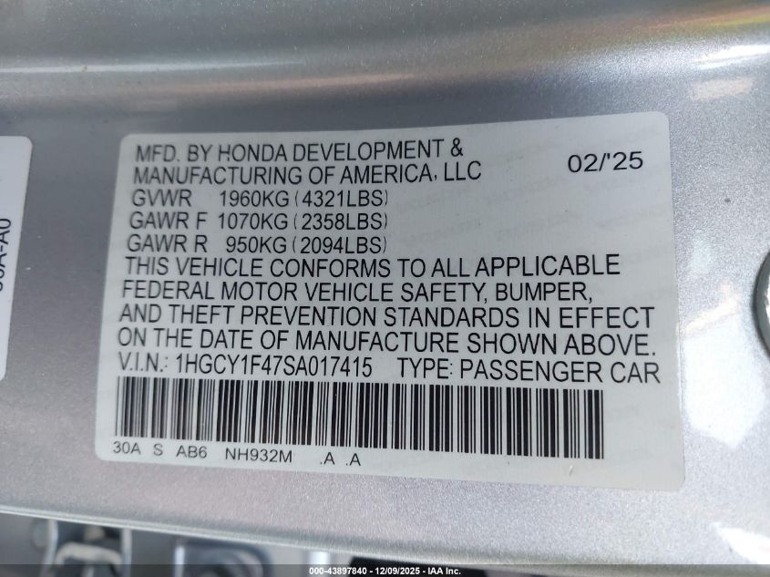 2025 HONDA ACCORD - 1HGCY1F47SA017415, колір - Сірий, 1.5, Бензин, Передній привід із США
