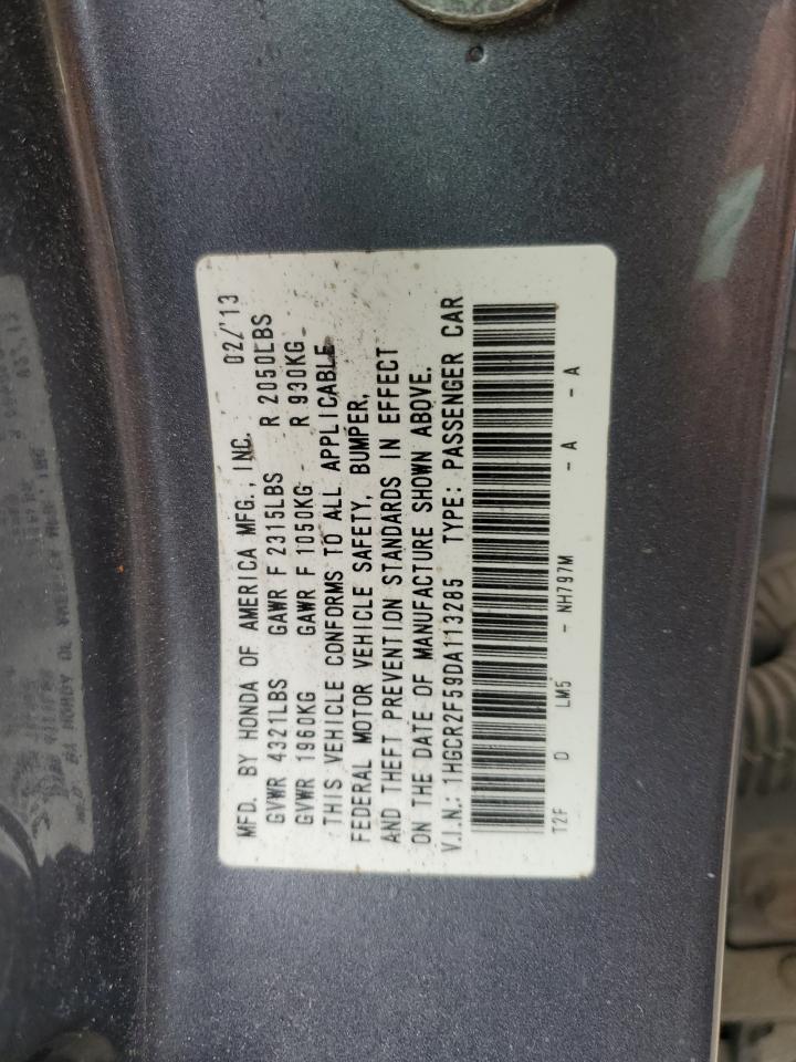 2013 HONDA ACCORD - 1HGCR2F59DA113285, колір - Сірий, 2.4, Бензин, із США
