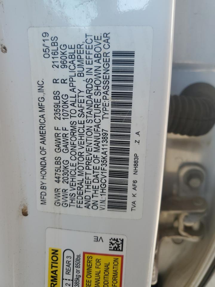 2019 HONDA ACCORD - 1HGCV1F35KA113897, колір - Білий, 1.5, Бензин, із США