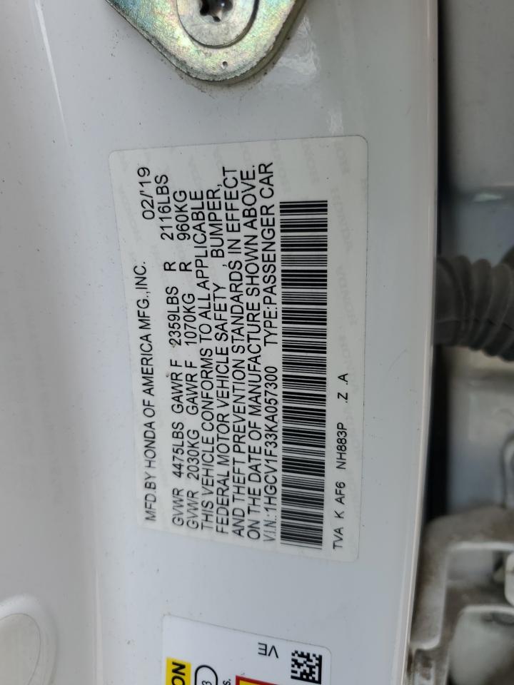 2019 HONDA ACCORD - 1HGCV1F33KA057300, колір - Білий, 1.5, Бензин, із США