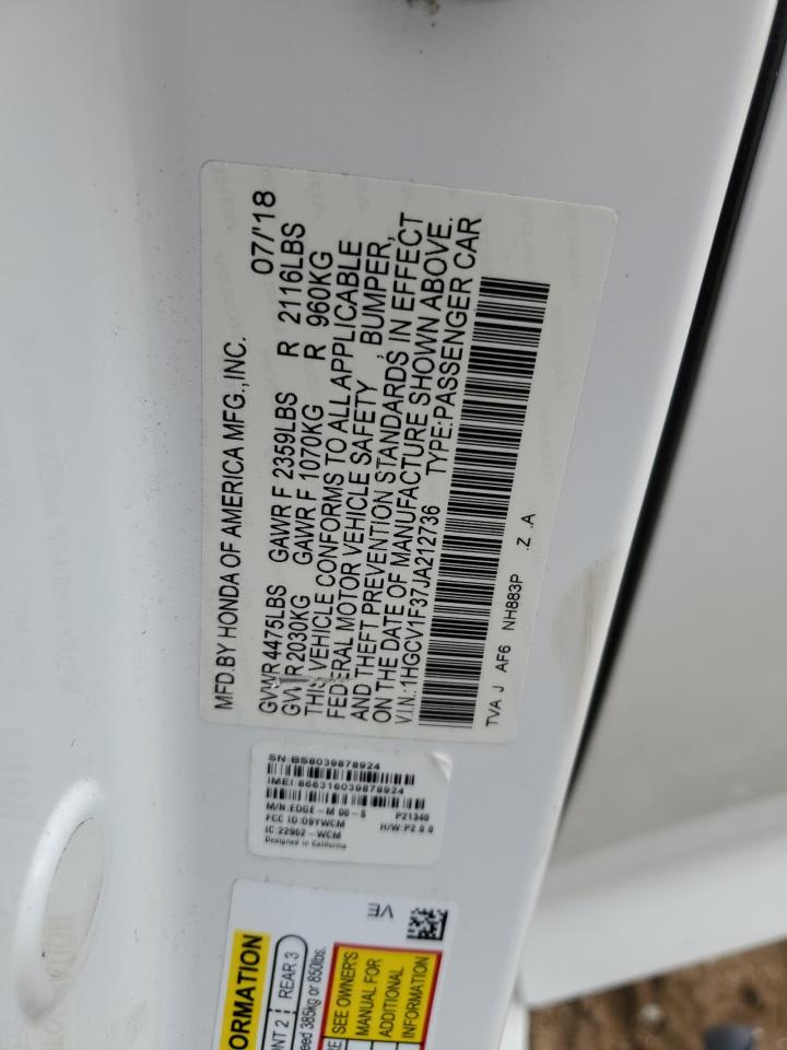 2018 HONDA ACCORD - 1HGCV1F37JA212736, колір - Білий, 1.5, Бензин, із США