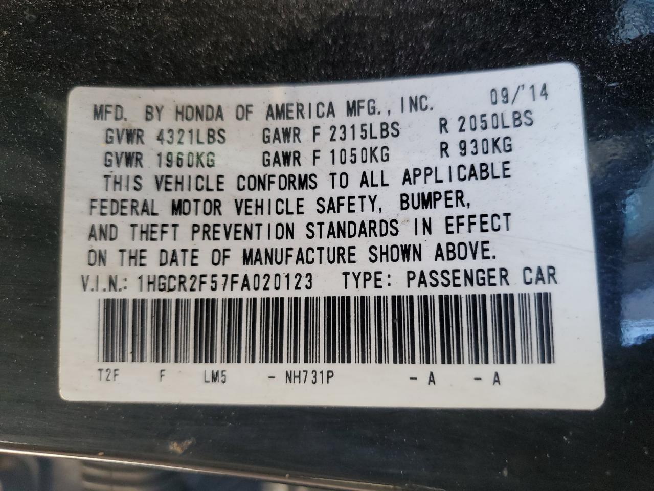 2015 HONDA ACCORD - 1HGCR2F57FA020123, колір - Чорний, 2.4, Бензин, із США