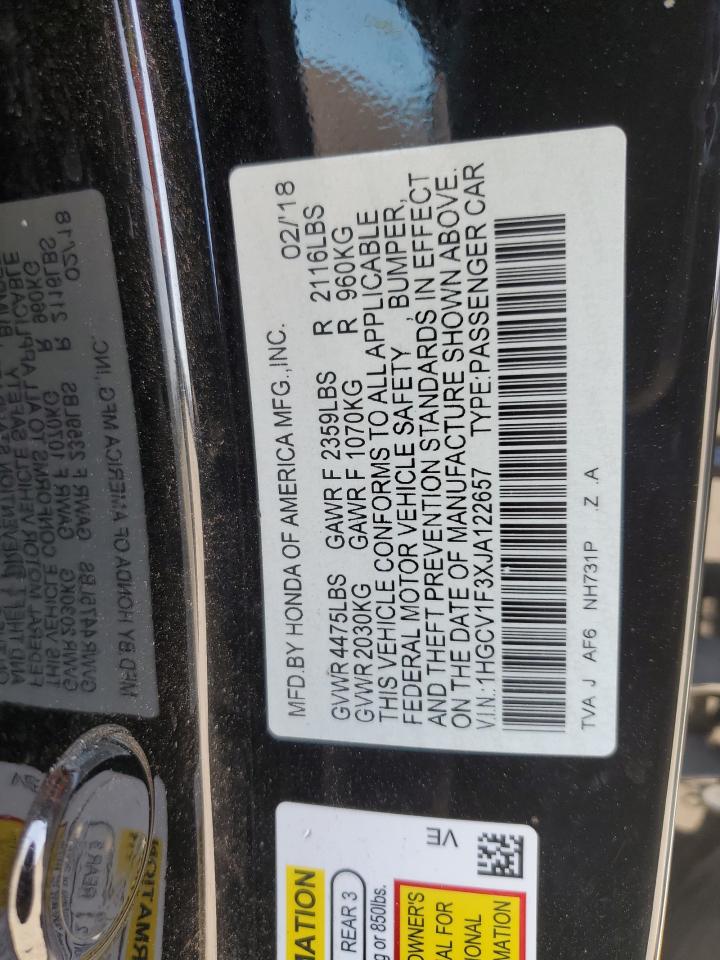 2018 HONDA ACCORD - 1HGCV1F3XJA122657, колір - Чорний, 1.5, Бензин, із США