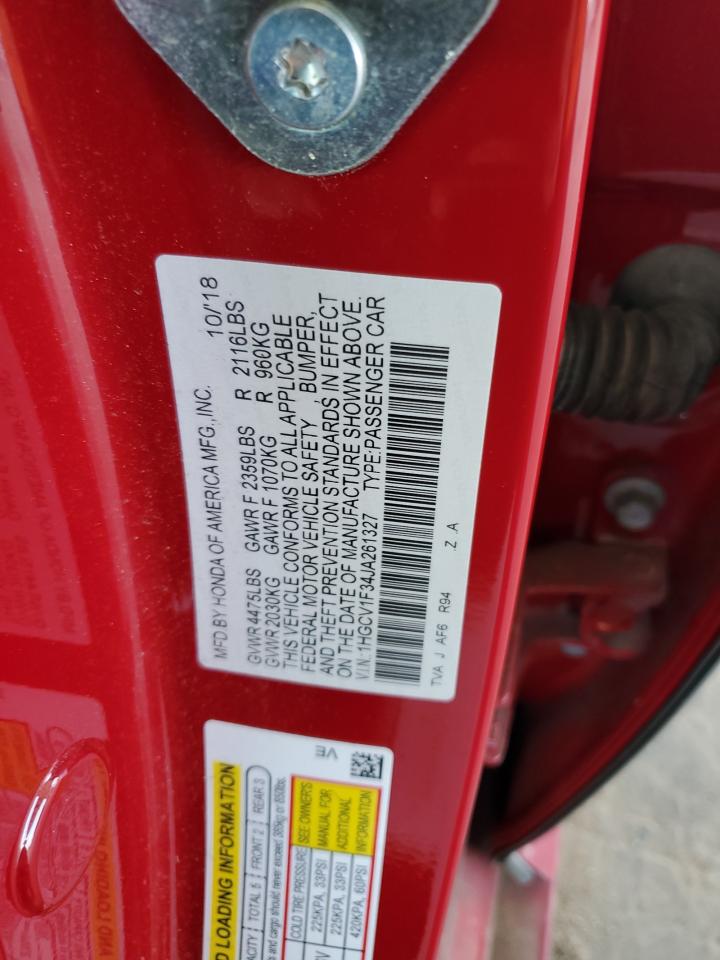 2018 HONDA ACCORD - 1HGCV1F34JA261327, колір - Червоний, 1.5, Бензин, із США