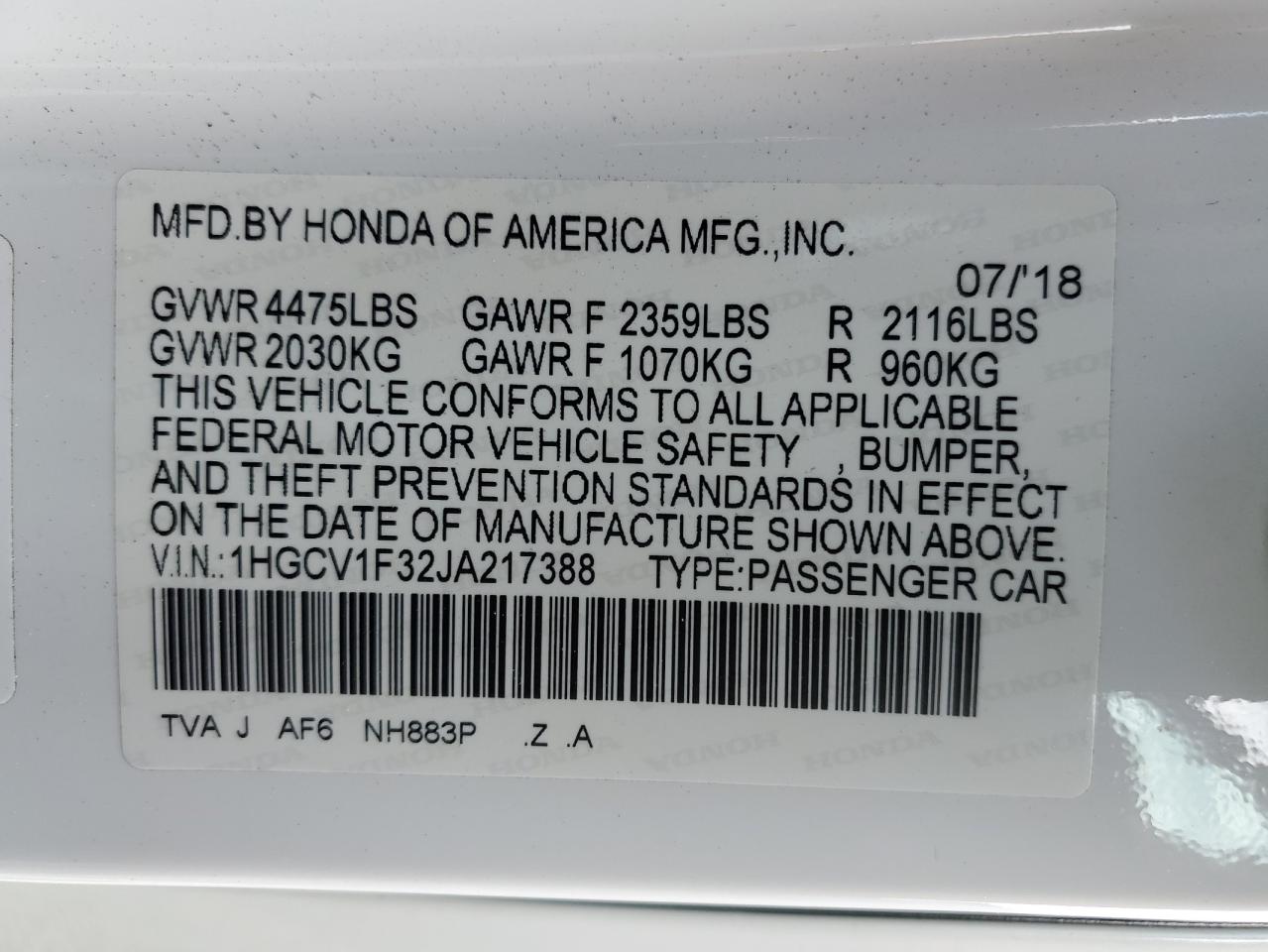 2018 HONDA ACCORD - 1HGCV1F32JA217388, колір - Білий, 1.5, Бензин, із США