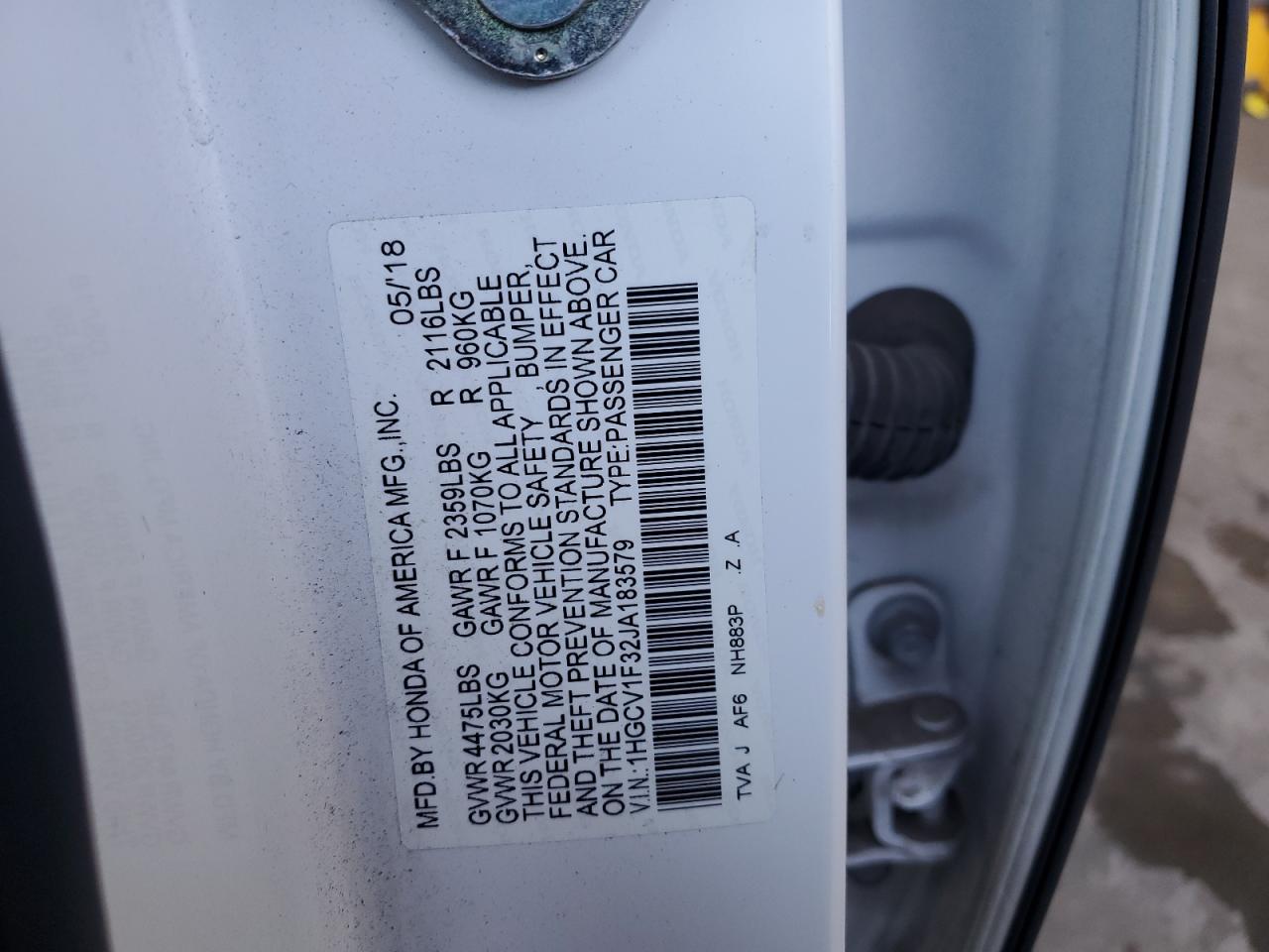2018 HONDA ACCORD - 1HGCV1F32JA183579, колір - Білий, 1.5, Бензин, із США