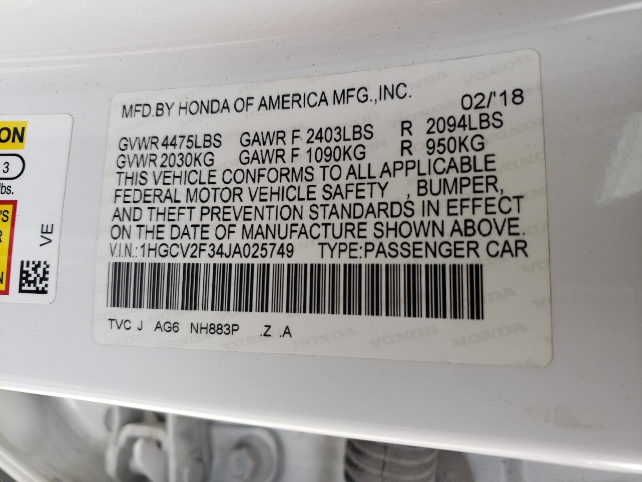 2018 HONDA ACCORD - 1HGCV2F34JA025749, колір - Білий, 2.0, Бензин, із США