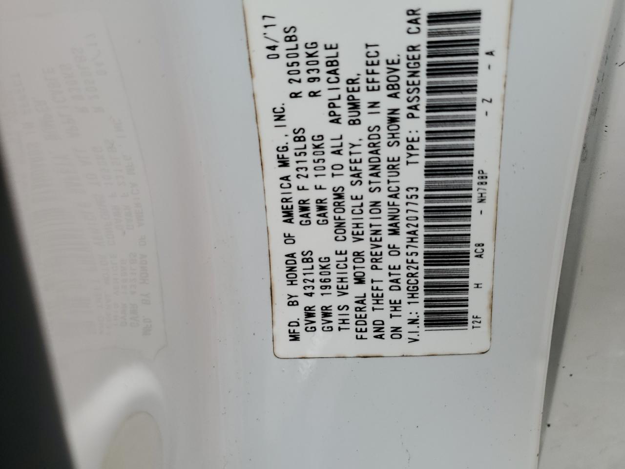Колір БілийЦиліндри 4VIN 1HGCR2F57HA207753Стан НевідомоУшкодження По всьому авто
