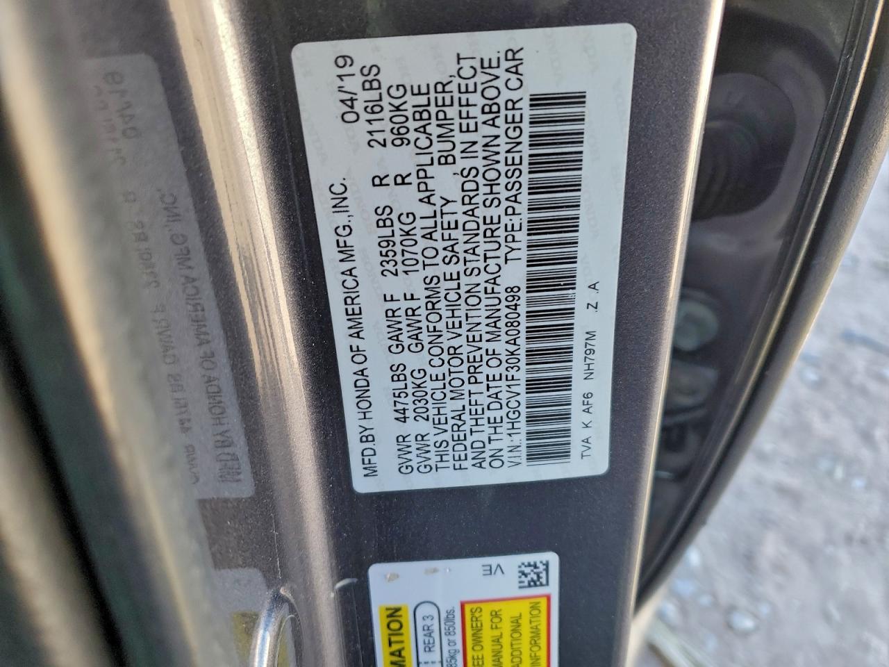 2019 HONDA ACCORD - 1HGCV1F30KA080498, колір - Деревне вугілля, 1.5, Бензин, із США