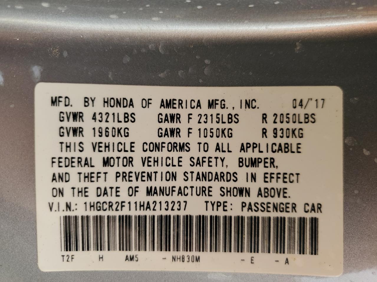 2017 HONDA ACCORD - 1HGCR2F11HA213237, колір - Срібний, 2.4, Бензин, із США