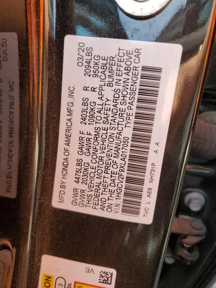 2020 HONDA ACCORD - 1HGCV2F9XLA017050, колір - Чорний, 2.0, Бензин, із США