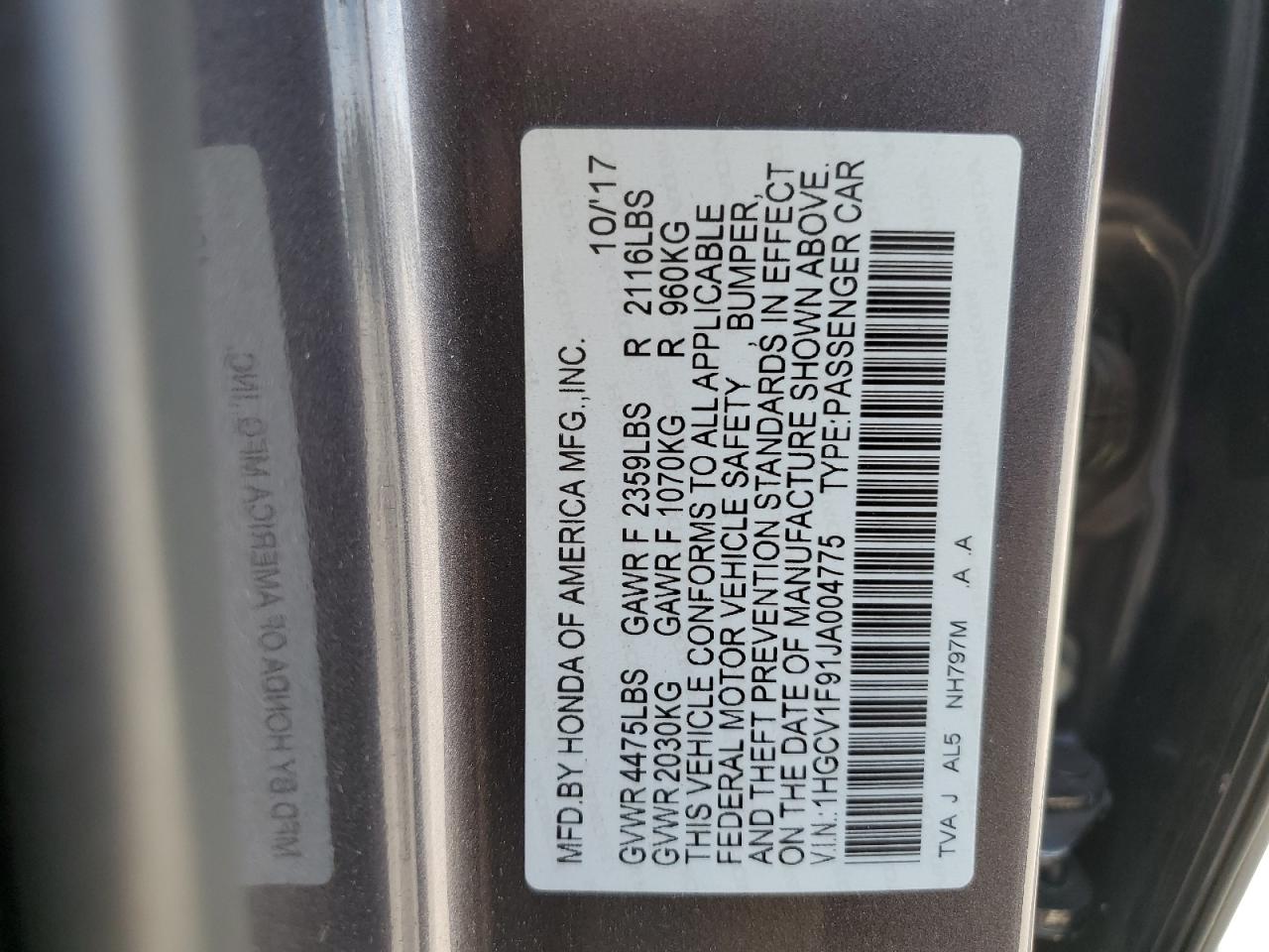 2018 HONDA ACCORD - 1HGCV1F91JA004775, колір - Сірий, 1.5, Бензин, із США