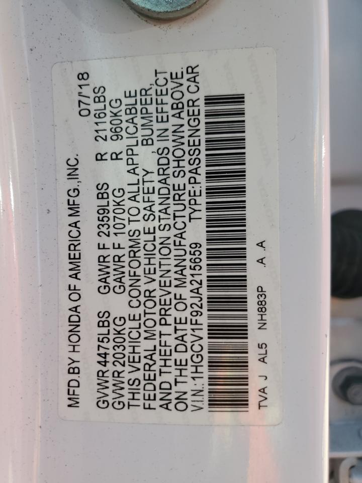2018 HONDA ACCORD - 1HGCV1F92JA215659, колір - Білий, 1.5, Бензин, із США
