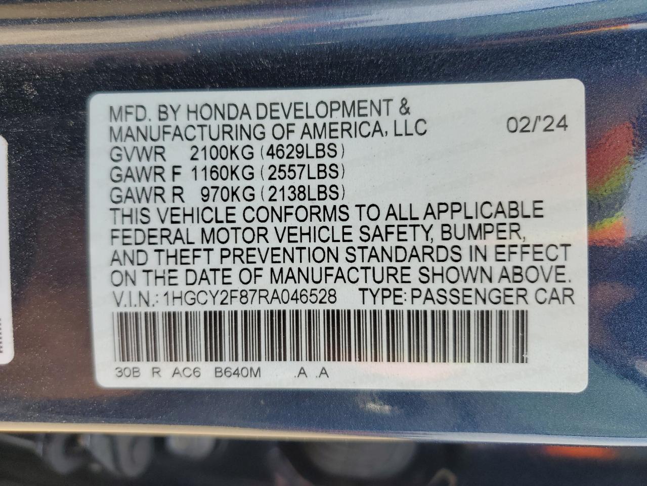 2024 HONDA ACCORD - 1HGCY2F87RA046528, колір - Синій, 2.0, Гібрид, із США