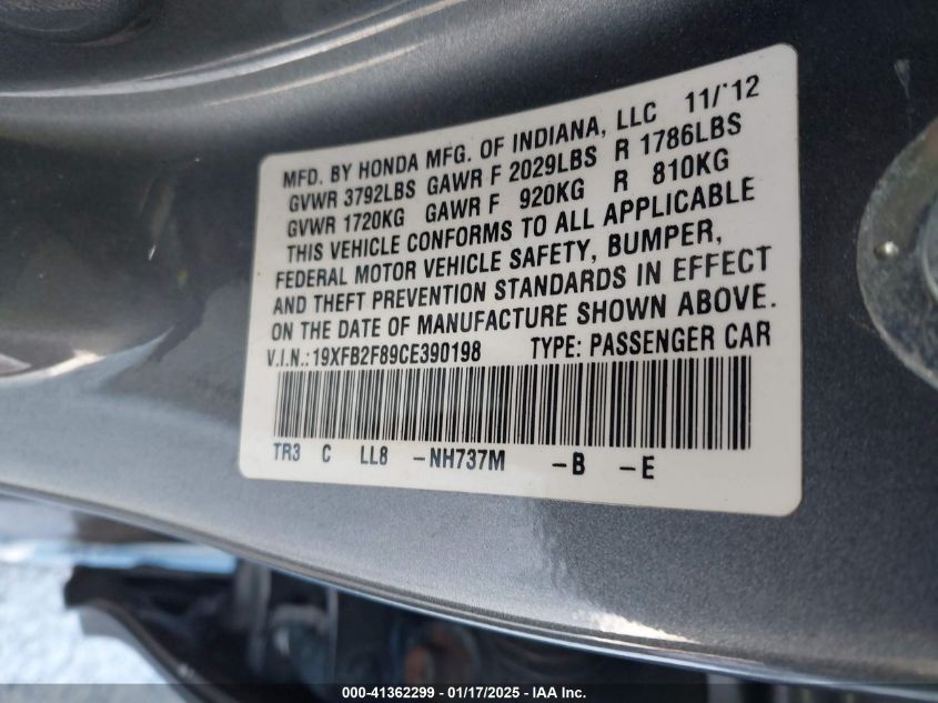 Колір СинійЦиліндри 4Привід Передній привідVIN 19XFB2F89CE390198Стан СтаціонарноУшкодження Пожежа двигуна