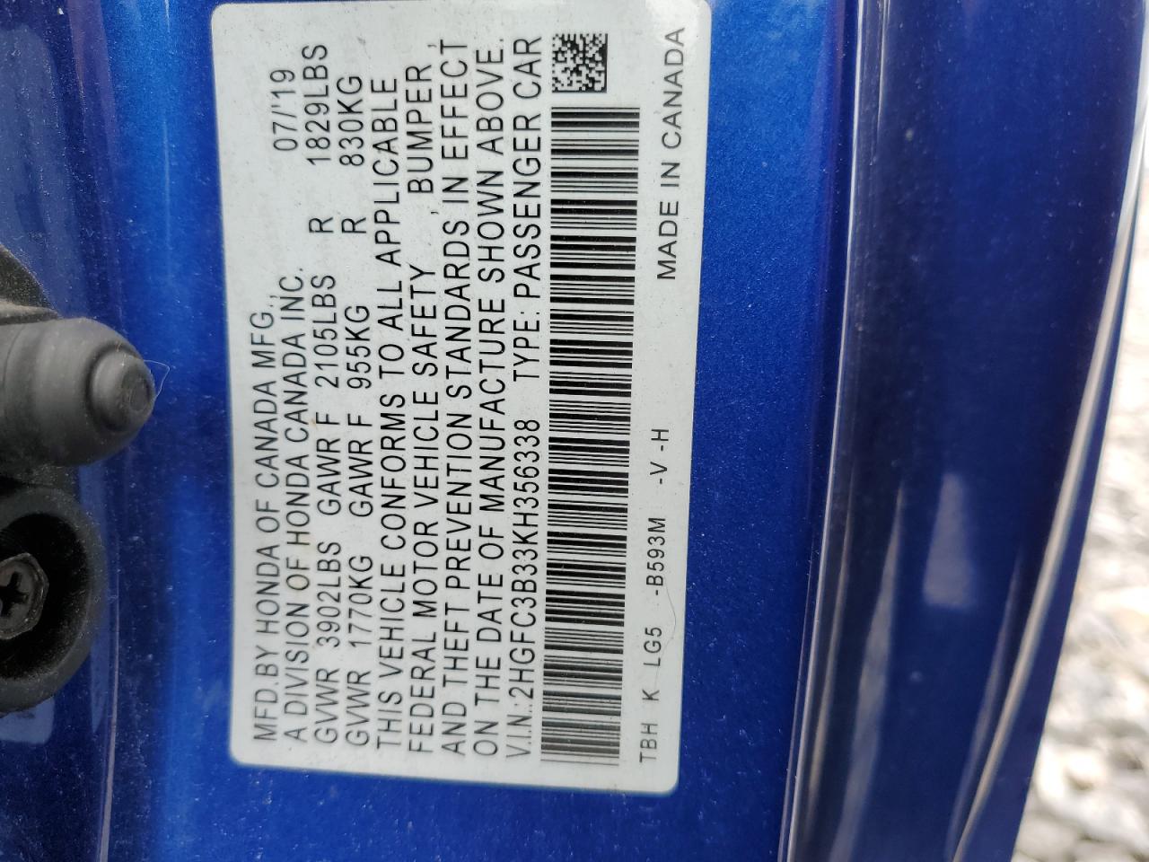 2019 HONDA CIVIC - 2HGFC3B33KH356338, колір - Синій, 1.5, Бензин, із США