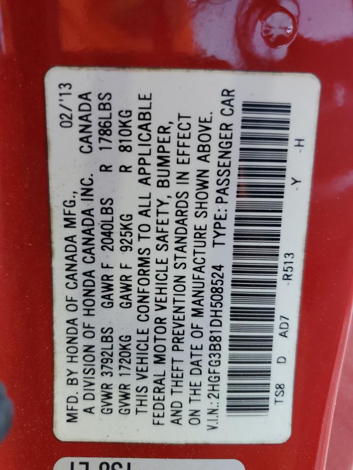 2013 HONDA CIVIC - 2HGFG3B81DH508524, колір - Червоний, 1.8, Бензин, із США
