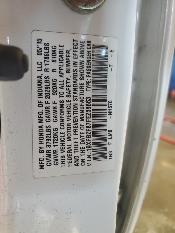 2015 HONDA CIVIC - 19XFB2F87FE259663, колір - Білий, 1.8, Бензин, із США