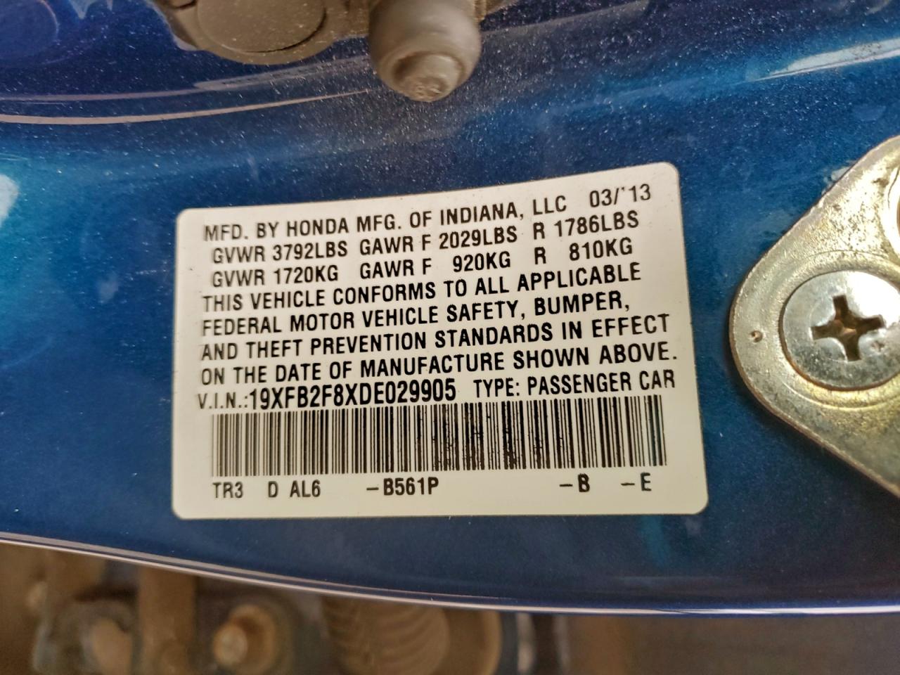 2013 HONDA CIVIC - 19XFB2F8XDE029905, колір - Синій, 1.8, Бензин, із США