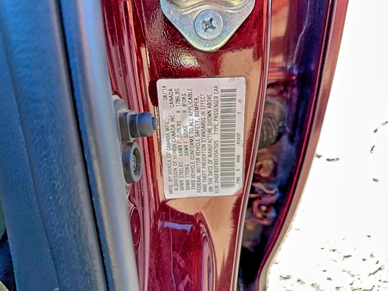 2014 HONDA CIVIC - 2HGFB2F8XEH547925, колір - Бургундія, 1.8, Бензин, із США