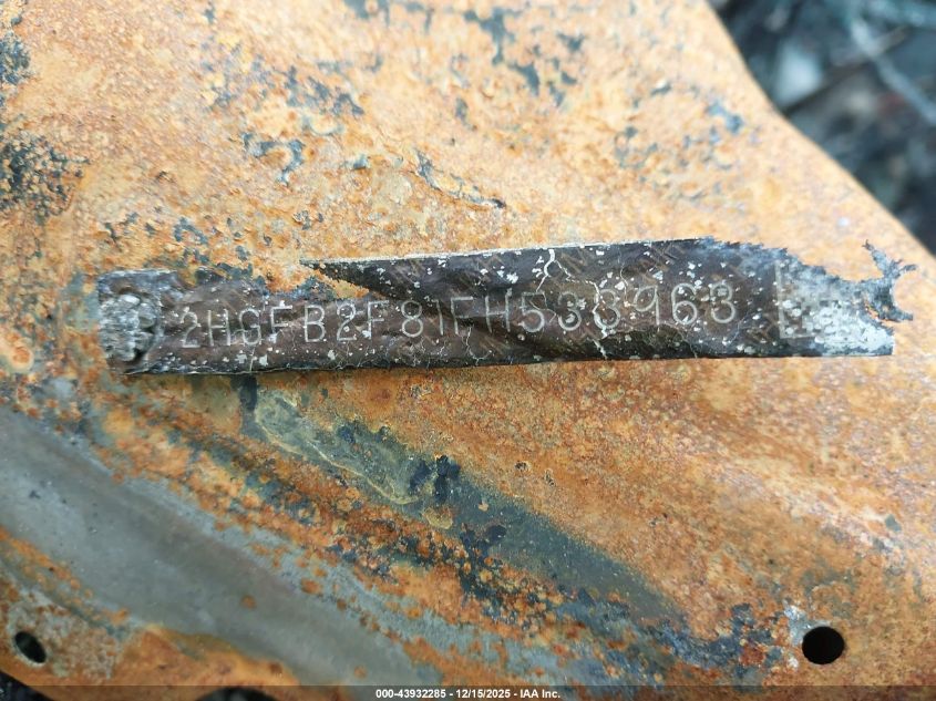 Колір ЧорнийЦиліндри 4Привід Передній привідVIN 2HGFB2F81FH533963Стан СтаціонарноУшкодження Пожежа