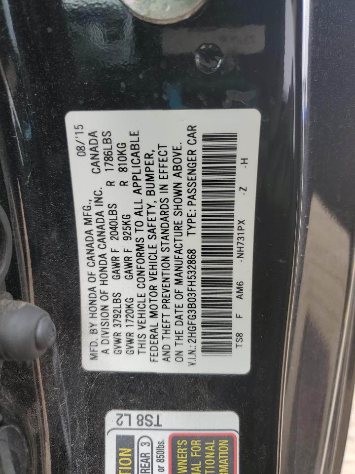 2015 HONDA CIVIC - 2HGFG3B03FH532868, колір - Чорний, 1.8, Бензин, із США
