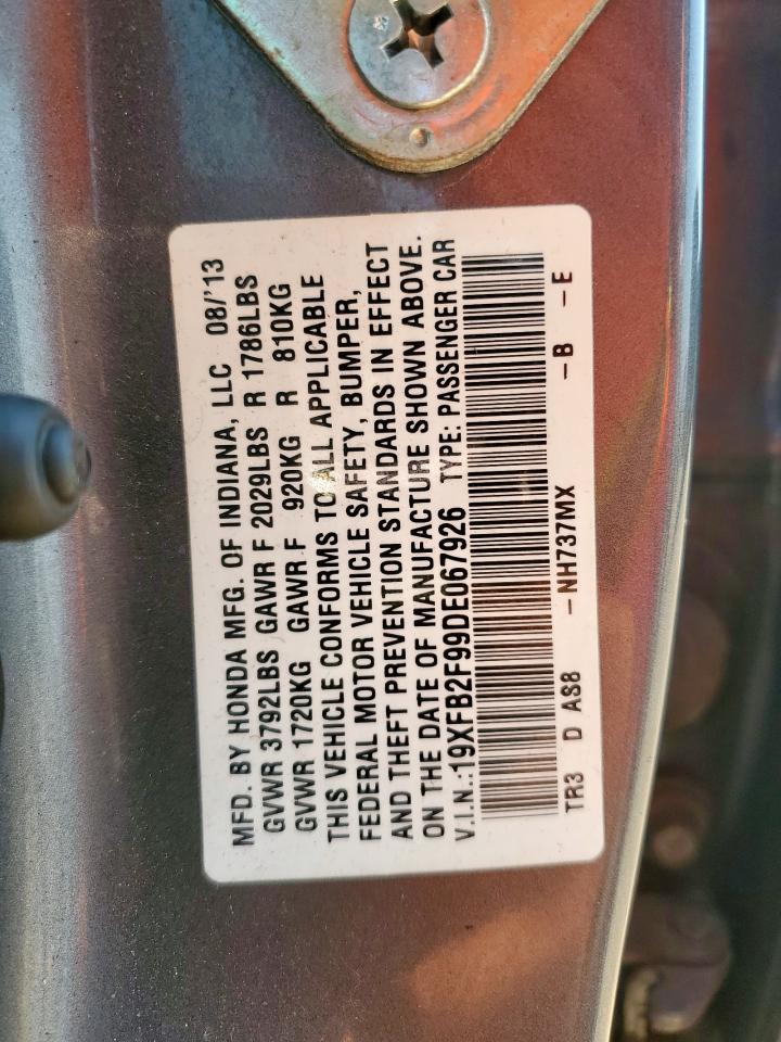2013 HONDA CIVIC - 19XFB2F99DE067926, колір - Сірий, 1.8, Бензин, із США